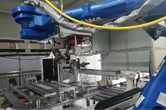´¢ÄÜµç³ØÄ£×é»ãÁ÷Åź¸½ÓÏîÄ¿£¬µç³ØÄ£×éÔÚÏ·½Á÷Ë®ÏßÉÏ£¬Õñ¾µºÍÏà»ú×°ÔÚÁù×ÔÓɶȻúе±Û×îºó¡£ »úе±Û°ÑÕñ¾µÒƶ¯µ½²î±ðµÄ¹¤Î»£¬º¸½ÓÈí¼þͨ¹ý´®¿ÚͨѶ»ñȡǰ¶Î¹¤ÐòµÄ¶à×éÊÓ¾õ¶¨Î»Ð§¹û£¬¶Ôͼµµ¾ÙÐÐλÖõ÷½â£¬ÔÙ¿ØÖÆ4000WÒ»Á¬¼¤¹âÆ÷³ö¹âº¸½Ó»ãÁ÷ÅÅ¡£